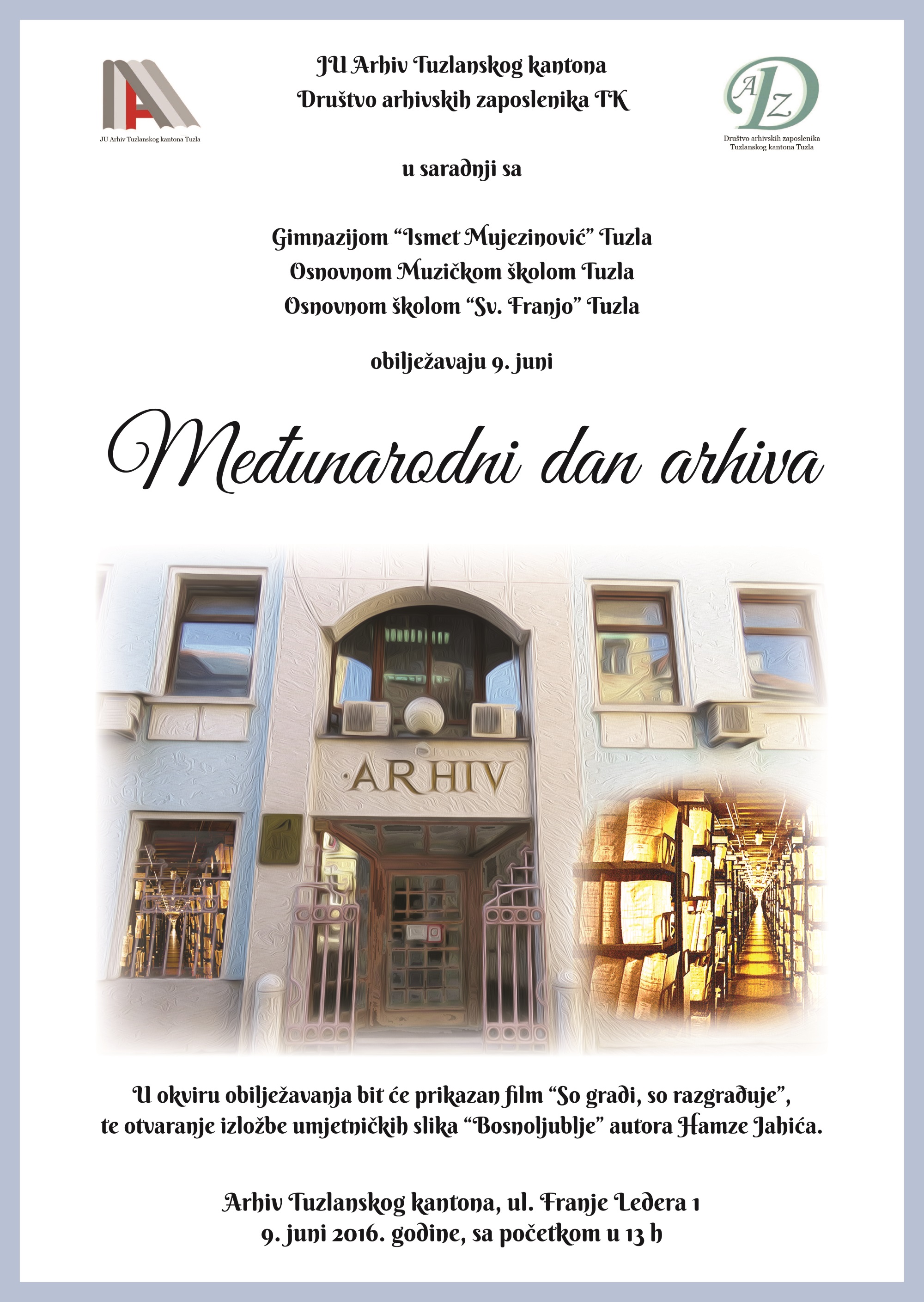 Arhiv Tuzlanskog kantona i Društvo arhivskih zaposlenika TK u saradnji Gimnazijom “Ismet Mujezinović” Tuzla, Osnovnom Muzičkom školom Tuzla i Osnovnom školom “Sv. Franjo” Tuzla obilježavaju 9. juni, Međunarodni dan arhiva.